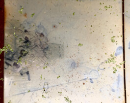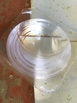 Glücksräppler und Wasserlinsen im Wasserbecken über Spiegeln und Fresnelinse.